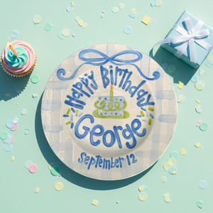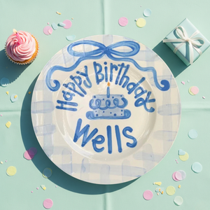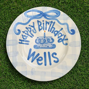 Personalized Blue Gingham 1st Birthday Plate - Preppy Boys Keepsake - BCP03
