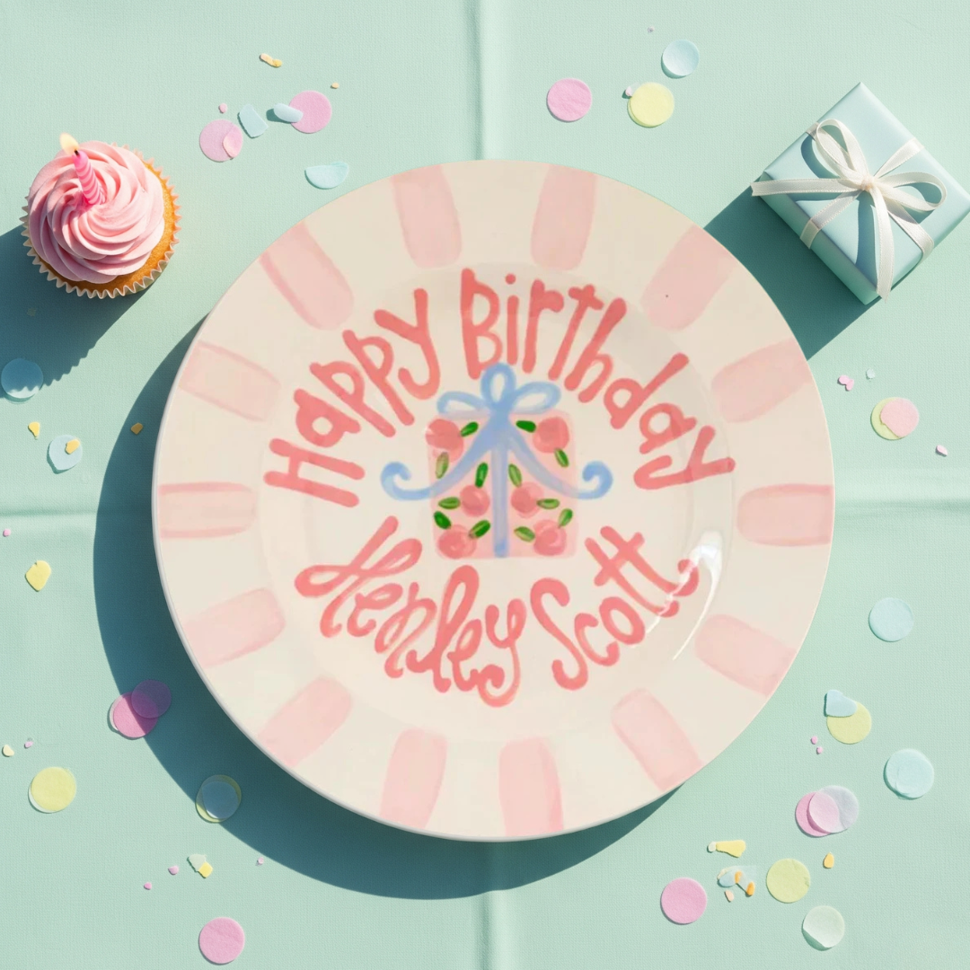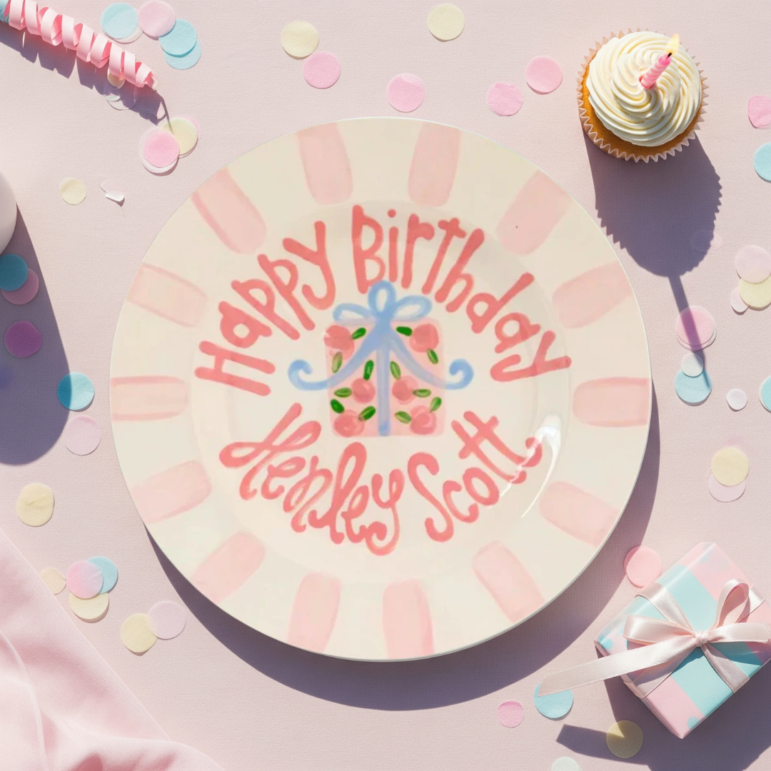 Personalized Floral Present 1st Birthday Plate - Hand-Painted Keepsake - BCP11