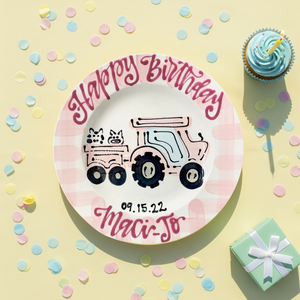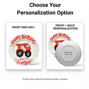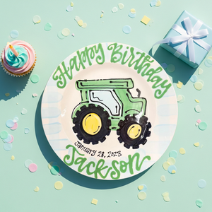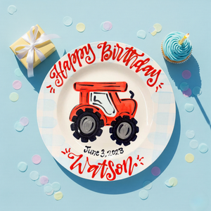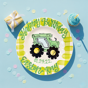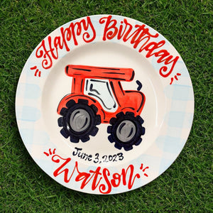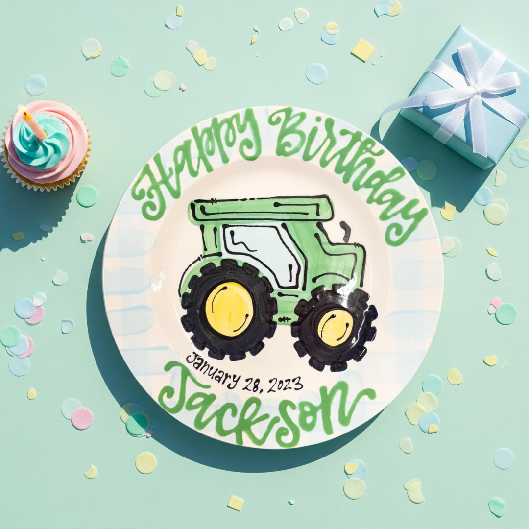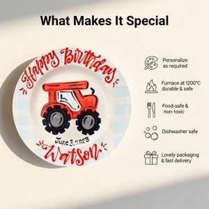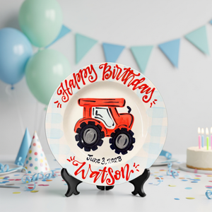 Personalized Tractor Birthday Plate – Custom Ceramic Gift for Kids- BCP25