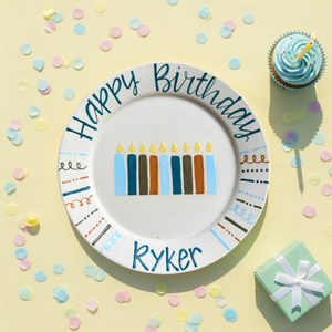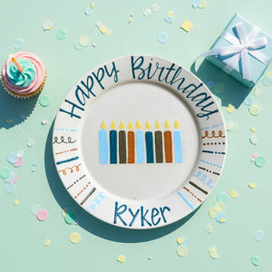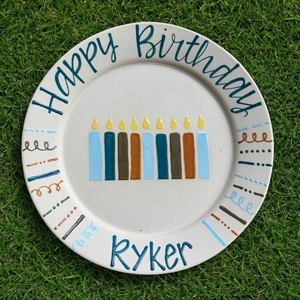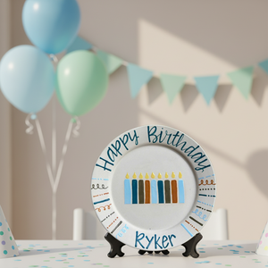 Personalized Ceramic Birthday Plate with Name – Hand-Painted Candle Design- BCP49