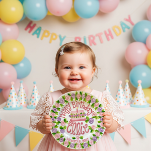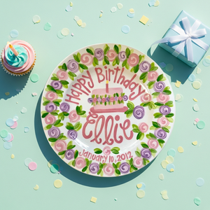 Personalized Boho Wreath 1st Birthday Plate - Custom Hand Painted - BCP21