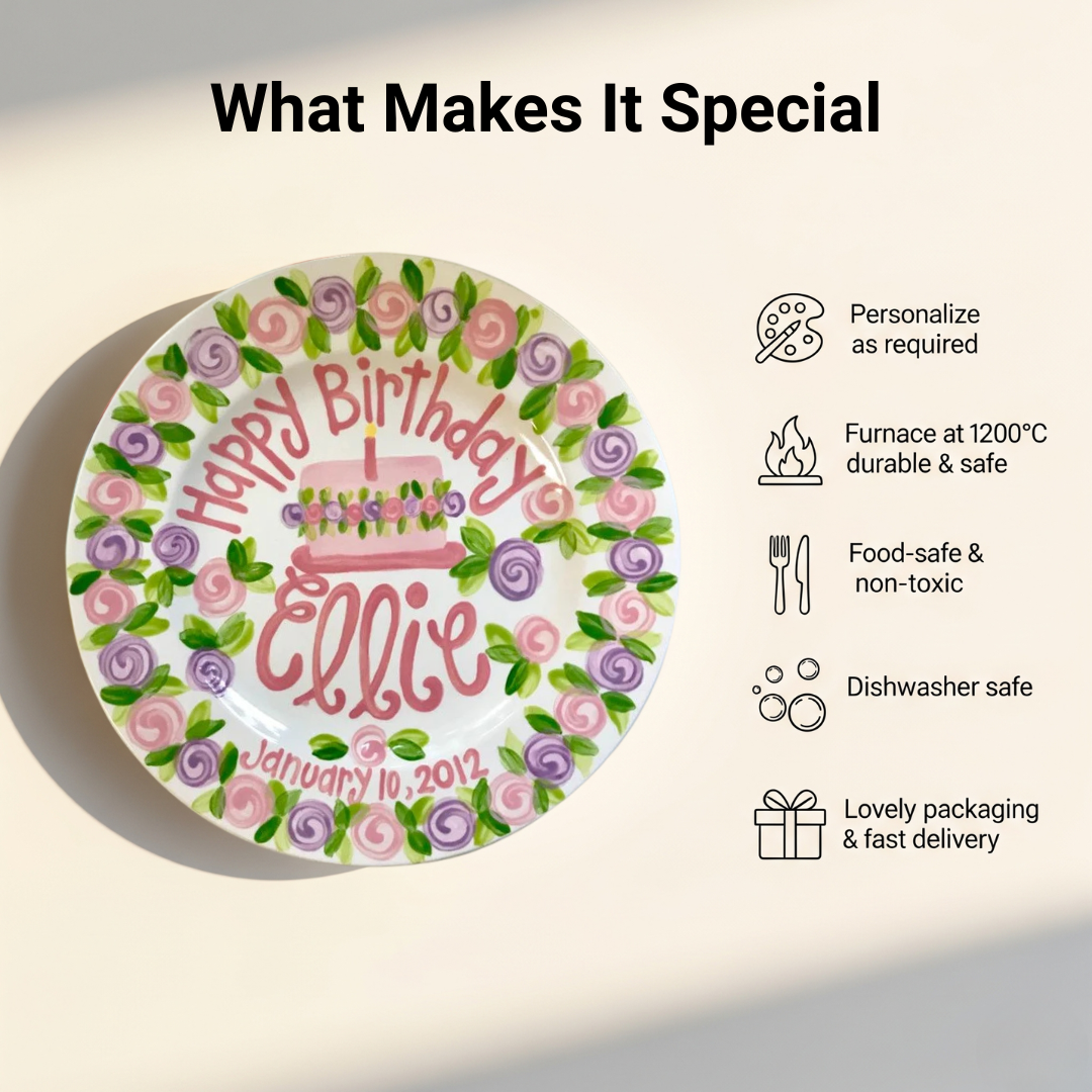 🎂 Hand-Painted Ceramic Birthday Plate – A Timeless Gift for Your Little One