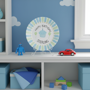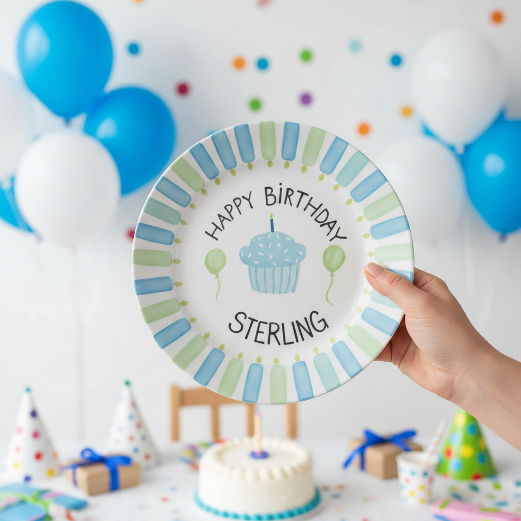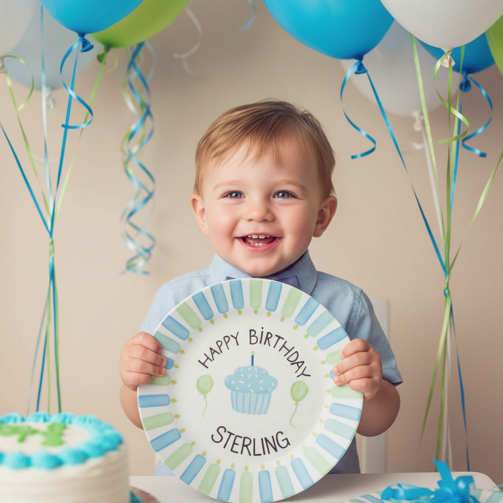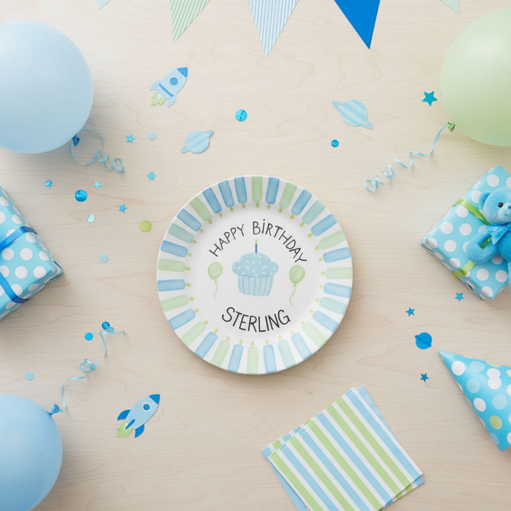Personalized Boy's Ceramic Birthday Plate - Custom Name & Hand-Painted Keepsake - BCP55