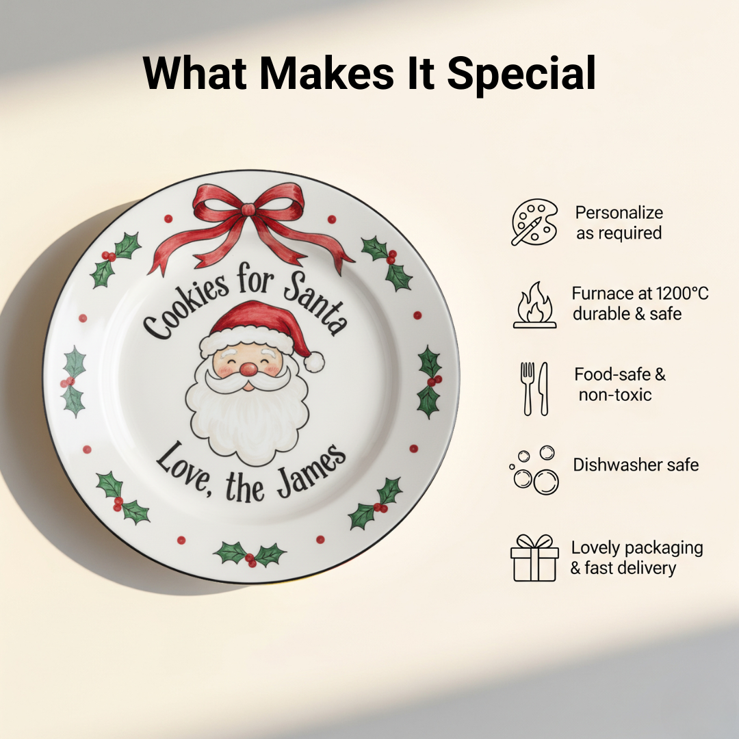 🎄Personalized Hand-Painted Ceramic Cookies for Santa Plate