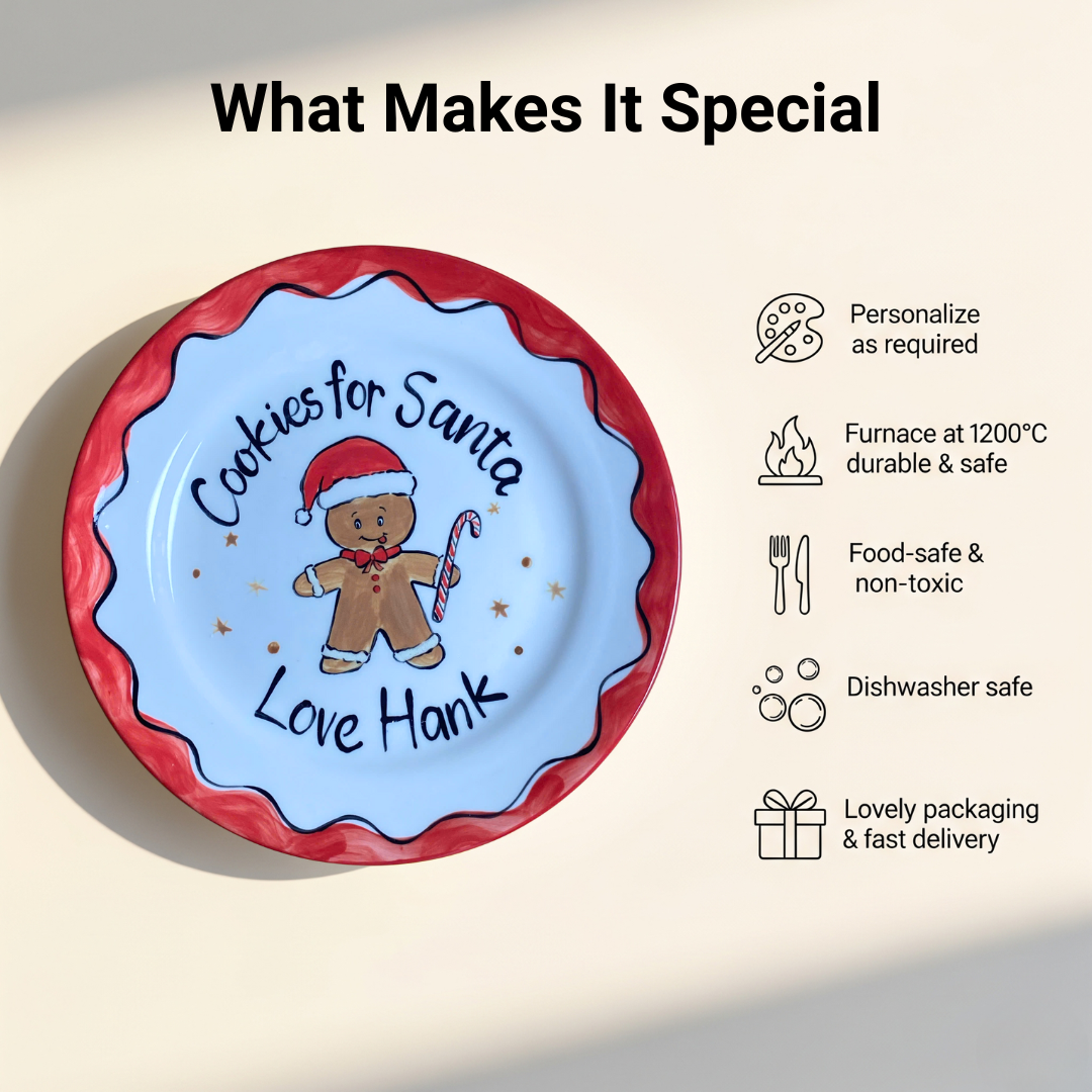 🎄Personalized Hand-Painted Ceramic Cookies for Santa Plate