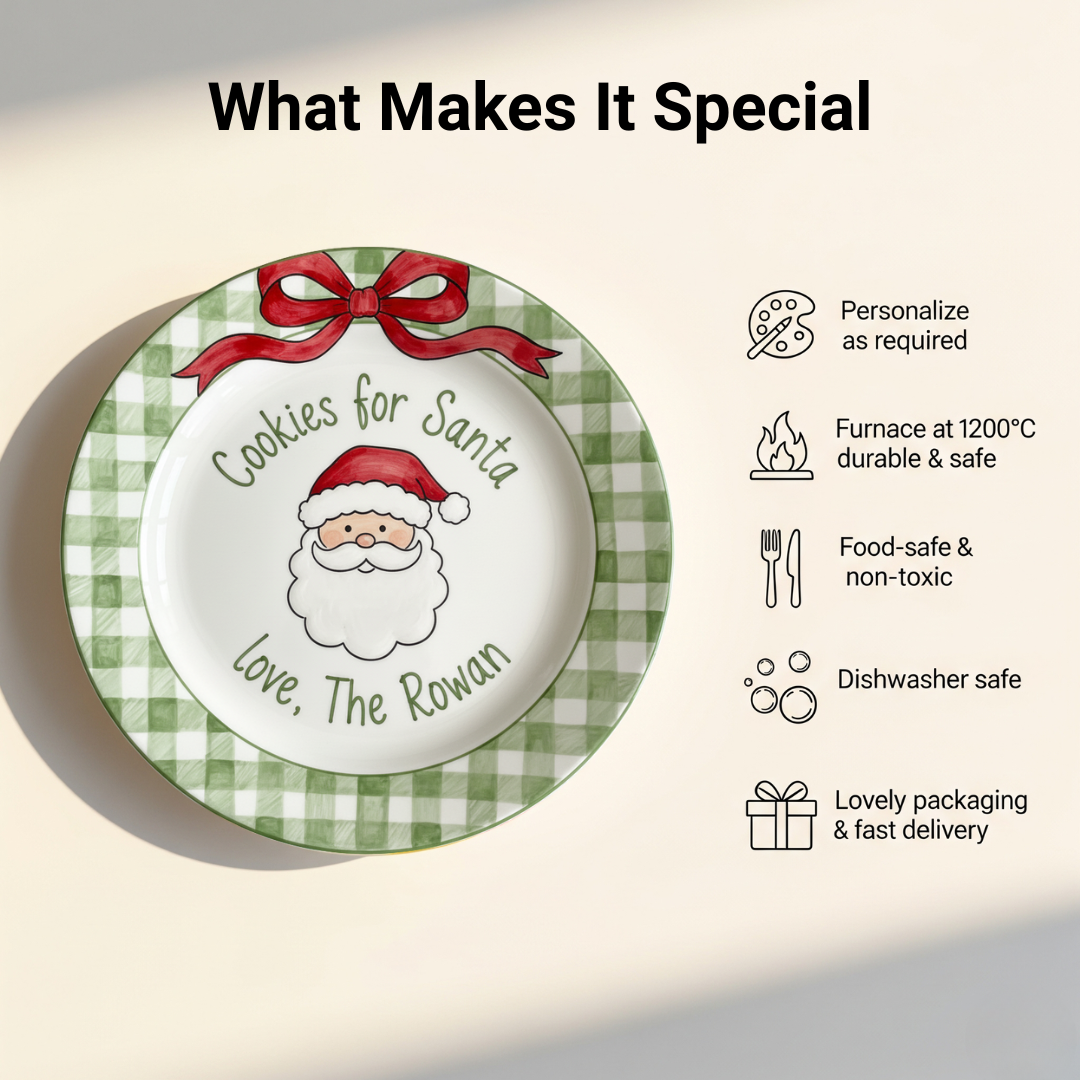 🎄Personalized Hand-Painted Ceramic Cookies for Santa Plate