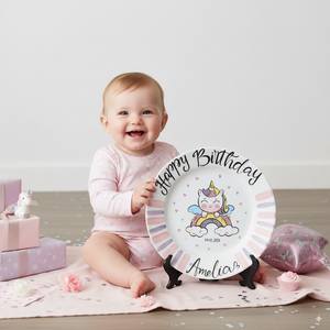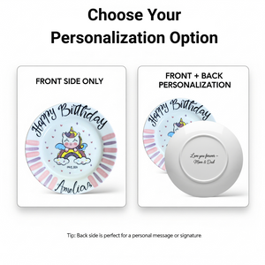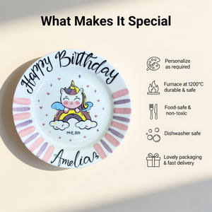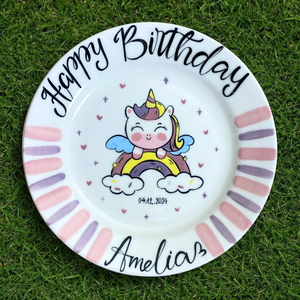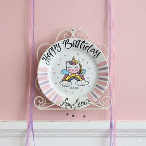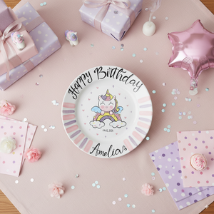 Personalized Ceramic Unicorn and Rainbow Birthday Plate - Unique Gift for Girls- BCP39