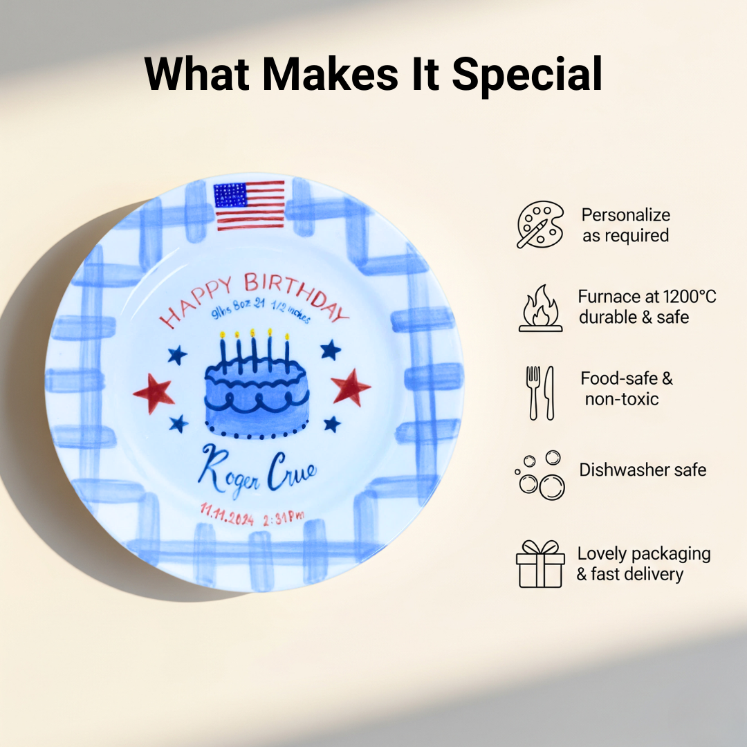 🎂 Hand-Painted Ceramic Birthday Plate – A Timeless Gift for Your Little One