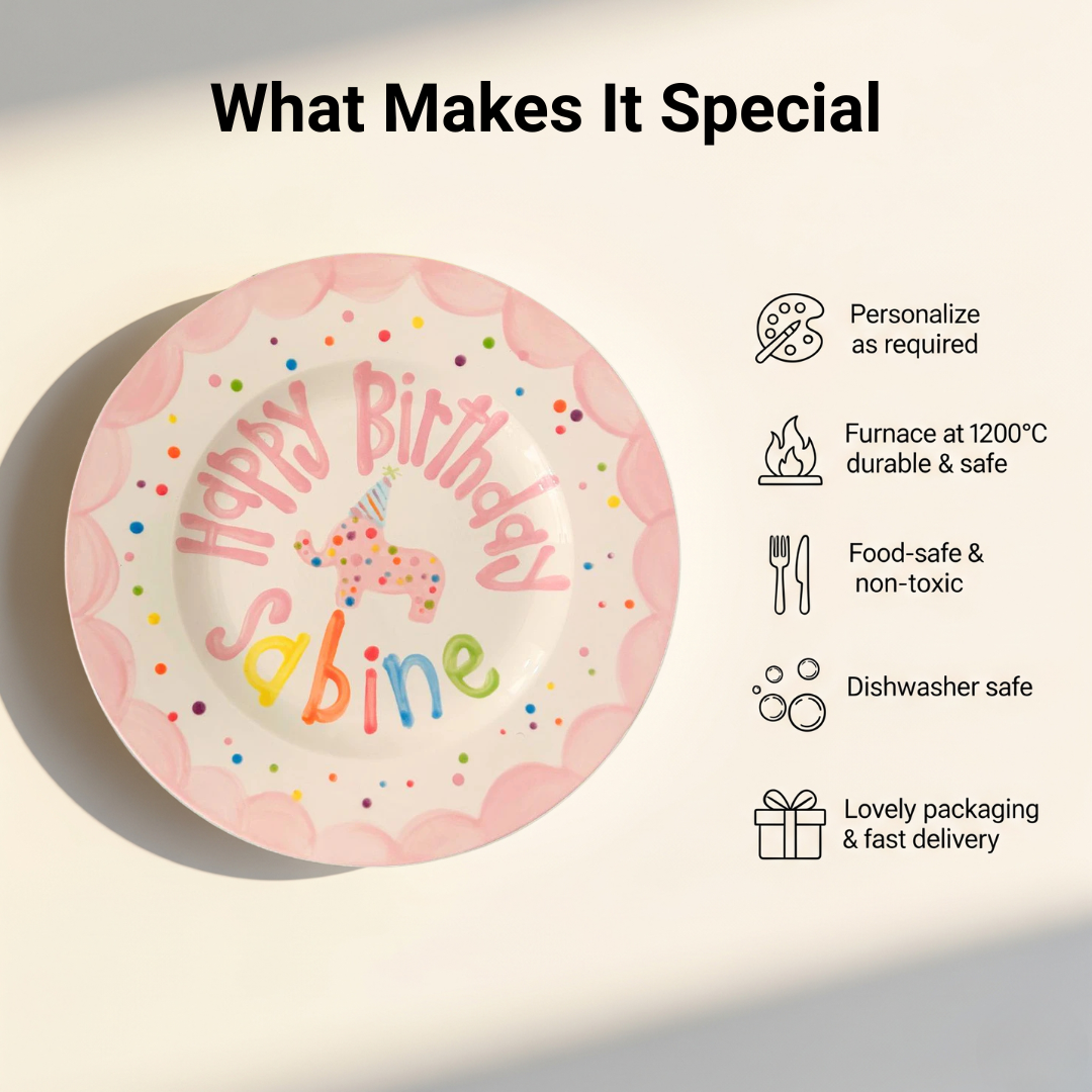 🎂 Hand-Painted Ceramic Birthday Plate – A Timeless Gift for Your Little One