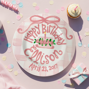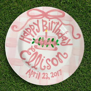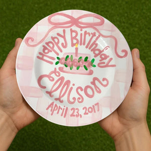 Personalized Gingham 1st Birthday Plate For Girls- Hand-Painted Ceramic - BCP01
