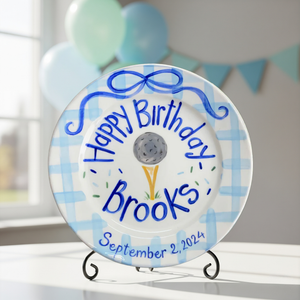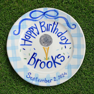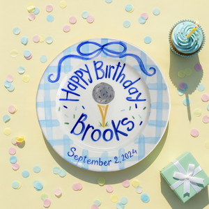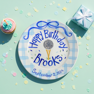 Personalized Golf Preppy 1st Birthday Plate - Blue Gingham - BCP19