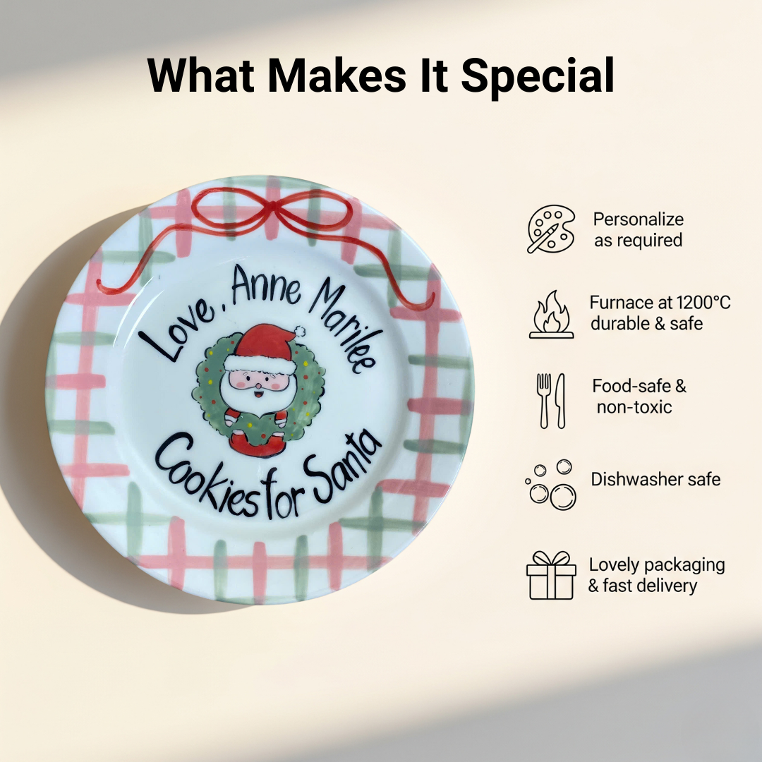 🎄Personalized Hand-Painted Ceramic Cookies for Santa Plate