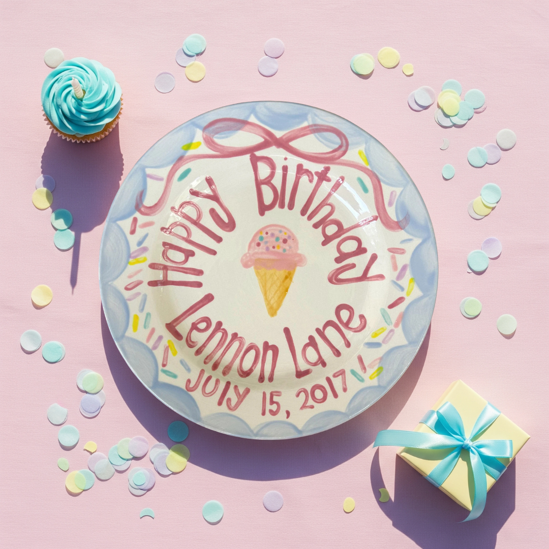 Personalized Ice Cream & Sprinkles 1st Birthday Plate - BCP22